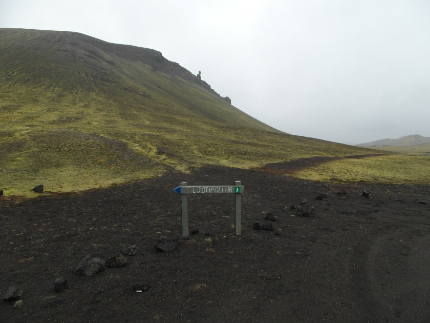 My only full day around Landmannalauger I did a 14.3K hike north to go around Norounamur, a small dormant volcanic hill, and the old lake inside another volcanic mound called Ljotipollur. The grey day and gusting winds caused some challenges and made taking breaks unpleasant, but the unique scenery kept driving me on.